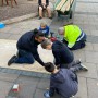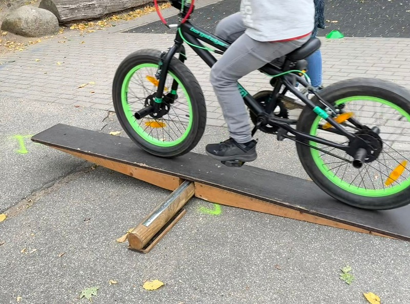 Die Vorschüler und Erstklässler hatten großen Spaß auf dem Rollerparkour auf dem Lehrerparkplatz!