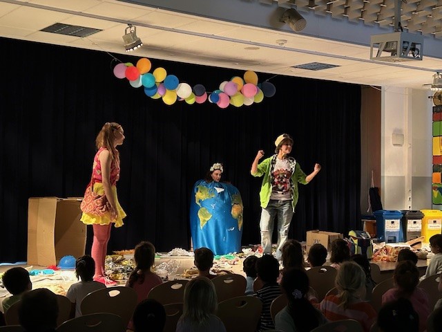 Innerhalb des Theaterstücks wurde den Kindern auf lustige, kindgerechte und spielerische Weise die Mülltrennung und deren Sinnhaftigkeit gezeigt.