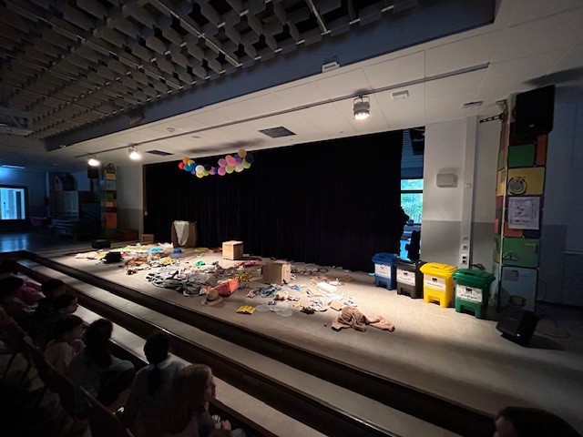 Am Ende des Theaterstücks halfen alle Kinder mit, den Müll in die richtigen Tonnen zu sortieren und erhielten eine Plakette „Held der Mülltrennung“ und die damit verbundene „Rettung der Erde“.