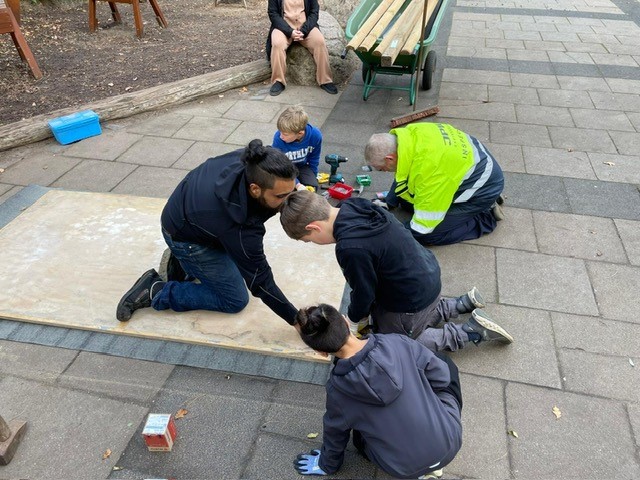 - Zwei weitere Bänke wurden auf Schulhof B gebaut.