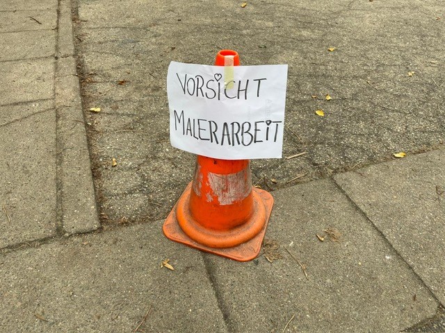 Auch der Schuppen und die Fahrzeuggarage wurden aufgeräumt und gereinigt, die blaue Linie nachgemalt. Die Bienen haben ein schützendes Dach erhalten und die Motive des Rollercontainers wurden erweitert.