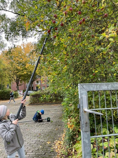 - Es wurden an verschiedenen Stellen des Schulhofes Veränderungen vorgenommen. Im Tipi-Bereich wird eine Obstwiese entstehen und es wurden dort bereits zwei Apfel- und zwei Pflaumenbäume gepflanzt.